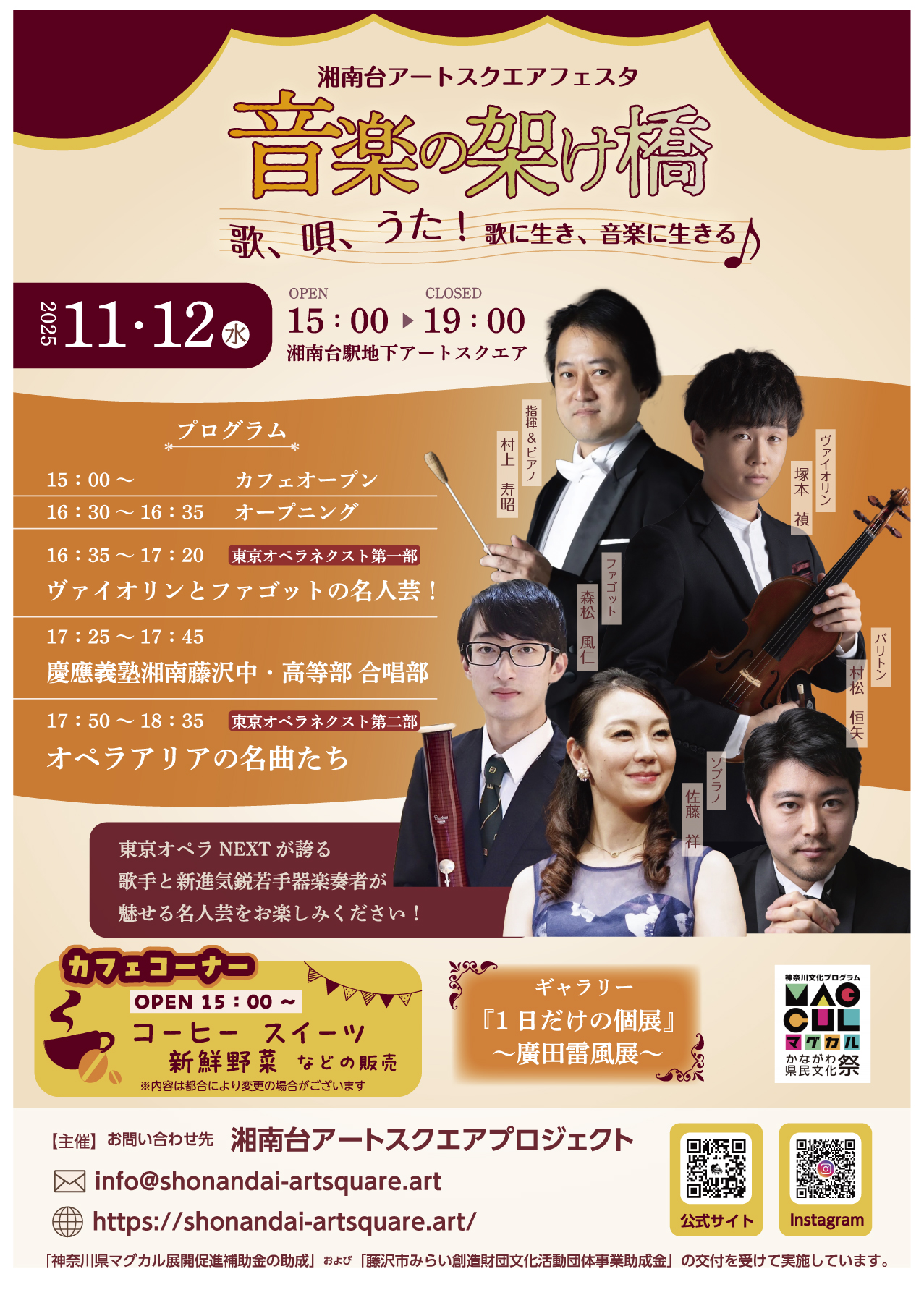 11月12日(水)は、アートスクエアフェスタ『音楽の架け橋』開催いたします。